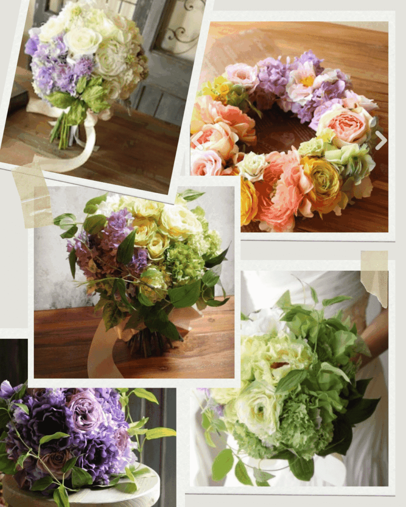 本格的に花の仕事をしたくなり、後に個人で店を運営する事を目標に、結婚式場でウェディングブーケや会場を飾り付ける仕事に就きました。